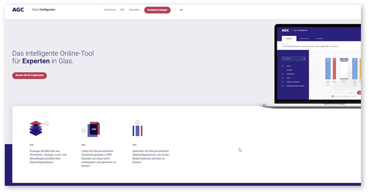 Mit dem Glass Configurator können Architekten und Planerinnen schon seit längerem die licht- und strahlungsphysikalischen Eigenschaften von Verglasungen bestimmen. Jetzt hat Glashersteller AGC das Werkzeug erweitert, sodass es auch Umweltdeklarationen (Environmental Product Declaration, EPD) berechnen kann. Mit EPDs lässt sich die Nachhaltigkeit von Baustoffen und -produkten über ihre gesamte Lebensdauer bewerten. Wer den in den Glass Configurator integrierten EPD-Generator nutzt, kann die Lebenszyklusanalyse der individuell konfigurierten Produkte vergleichen und die Umweltdeklaration für die Verglasung erstellen. Das Online-Tool berechnet auf Grundlage der Normen EN 15804+A2 und EN 17074 mögliche Umwelteinflüsse und gibt anschließend einen Überblick über die Ökobilanz. Einige der in den generierten EPD enthaltene Informationen werden voraussichtlich erforderlicher Bestandteil der Leistungs- und Konformitätserklärung gemäß der neuen Bauprodukteverordnung und damit für jedes Bauprodukt verpflichtend, für das eine CE-Kennzeichnung benötigt wird. Schon jetzt setzen Gebäudezertifizierungen eine vorhandene Umweltdeklaration voraus. jb