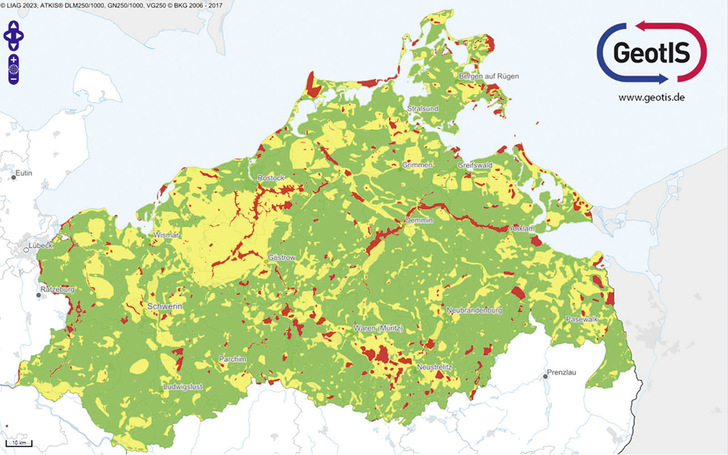 Das Geothermische Informationssystem GeotIS stellt geothermische Ressourcen dar und zeigt auf Überblickkarten, wo Erdwärmesonden zum Heizen und Kühlen von Gebäuden eingebaut werden können. Entwickelt haben es Forschende des Leibniz-Instituts für Angewandte Geophysik und der Georg-August-Universität Göttingen zusammen mit den Geologischen Diensten Deutschlands. Ihre erste Ampelkarte haben sie nun veröffentlicht – für Mecklenburg-Vorpommern. Für die Ampelkarte haben die Projektpartner komplexe geologische Daten ausgewertet und für Laien verständlich aufbereitet. Weitere Ampelkarten für die ganze Republik sind bis Ende des Jahres geplant. Zudem sollen zukünftig Potenzialkarten darstellen, wie viel Wärme aus dem Boden die Erdsonden gewinnen können. Für Detailinformationen leitet GeotIS auf die Internetportale der zuständigen Fachbehörden in den jeweiligen Bundesländern weiter. jb