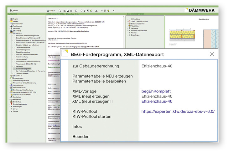 Mit der Bauphysik- und GEG-Software DÄMMWERK 2021 lassen sich nun Effizienzhausparameter für die Bundesförderung für effiziente Gebäude (BEG) übergeben. Seit dem 1. Juli 2021 können Bundesfördermittel für Effizienzhäuser (WG) und Effizienzgebäude (NWG) bei der KfW beantragt werden. Für die Antragstellung müssen sich Energieeffizienz-ExpertInnen online bei der KfW einwählen und eine Datei mit den verlangten Projektdaten übergeben. Mit der Software von Kern Ingenieurkonzepte lässt sich das dafür notwendige XML-Übergabeformat erzeugen. Man benötigt dazu eine Energiebedarfsberechnung nach dem Gebäudeenergiegesetz und den Nachweis einer Effizienzklasse nach BEG-Definition. Im Wohnungsneubau handelt es sich um die Effizienzhäuser EH 55 oder EH 40, bei der Sanierung von Wohngebäuden um die Effizienzhäuser EH 40 bis EH 100 und bei anerkannten Baudenkmälern um EH 160. Die Effizienzhäuser lassen sich durch eine EE-Klassifizierung für die Nutzung erneuerbarer Energien aufwerten. Im Neubau können alternativ mit einem Nachhaltigkeitszertifikat (NH-Klasse) oder mit dem Einsatz von PV-Anlagen (Plus-Klasse) zusätzliche Förderprozente geltend gemacht werden. Ähnlich sieht es beim Neubau oder bei der Sanierung von Nichtwohngebäuden aus. Interessierte können sich kostenlose Testlizenzen der Software auf der Internetseite des Unternehmens herunterladen. jb
