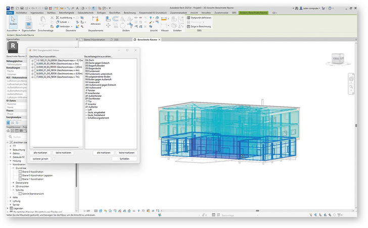 Die überarbeitete Software Revit PlugIn GBIS von Solar-Computer vereinfacht die TGA-Planung mithilfe eines automatisierten Workflows. Ein Revit-Modell ist eine BIM-Software von Autodesk. Die Software von Solar-Computer arbeitet vom Modellaufbau über die Berechnung bis zur Ergebnisübertragung bidirektional, denn: BIM-Modell und Rechenmodell arbeiten Hand in Hand, und zwar vom Aufbau über die normkonforme Berechnung (z. B. DIN EN 12831-1) bis hin zur vollständigen Rückübertragung der Ergebnisse in das Revit-Modell. Eine strukturierte Funktionsleiste sowie Optionen wie der Raum- und Bauteil-Manager ermöglichen eine Übersicht bei komplexen Konstruktionen. 13 durchgängige Rechenanwendungen aus den Bereichen Ökobilanz, Energie, Heizung, Sanitär, Klima und Lüftung sind verfügbar. ar