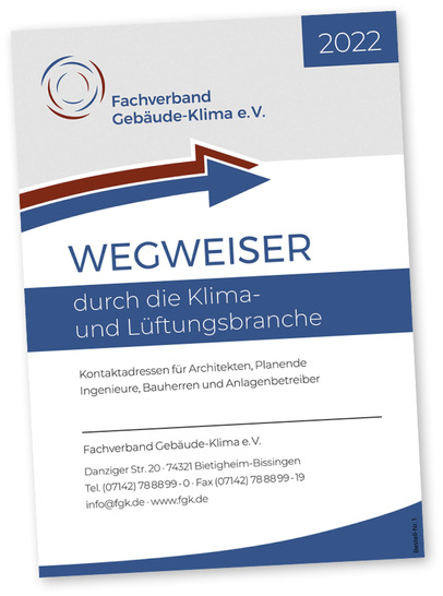 Der Fachverband Gebäude-Klima (FGK) hat den kostenfreien Wegweiser durch die Klima- und Lüftungsbranche aktualisiert und neu aufgelegt. Architekt:innen, planende Ingenieur:innen, Bauende und Anlagenbetreiber:innen finden darin schnell die für sie relevanten Unternehmen. Der Wegweiser gibt zunächst alle FGK-Mitgliedsunternehmen mit ihren Kontaktdaten an, gefolgt von einer Aufteilung nach Produktgruppen. Eine tabellarische Übersicht listet die Produktbereiche der Fachgroßhandelsunternehmen im FGK. Bei den Planungs-, Ausführungs- und Wartungsfirmen sind auf einen Blick die Objektbereiche zu erkennen, in denen die jeweilige Firma tätig ist. Weitere Rubriken führen Anbieter von Reinigungsgeräten und von Dienstleistungen zur Reinigung von Raumlufttechnischen Anlagen an. Sachverständige und Gutachter:innen, wissenschaftliche Institute, Aus- und Weiterbildungsstätten, Verbände, Verlage sowie Fördermitglieder sind ebenfalls in eigenen Rubriken zu finden. jb