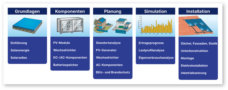 Der Landesverband Berlin Brandenburg der Deutschen Gesellschaft für Sonnenenergie (DGS) und die Hochschule für Technik und Wirtschaft (HTW) Berlin haben ihr Angebot auf der Wissensplattform pv-wissen.de erweitert. Ab sofort veröffentlichen sie regelmäßig Praxiswissen zur Installation von PV-Anlagen. Von der Wahl der passenden Unterkonstruktion über das Setzen von Dachhaken bis hin zur AC- und DC-Verkabelung finden sich Expertentipps, die für eine sichere Montage, Elektroinstallation und Inbetriebnahme wichtig sind. Der Themenblock ist in vier Teilabschnitte aufgeteilt. Den ersten – Dächer, Fassaden und Statik – finden Sie bereits auf der Wissensplattform. Die nächsten drei – Unterkonstruktion, Montage und Elektroinstallation sowie Inbetriebsetzung – folgen monatsweise bis März 2025. Die Inhalte sind kostenlos zugänglich und werden mit Werbeeinnahmen finanziert. Ein Monatsabo ohne Werbung ist ab 3,99 €, ein Jahresabo ab 39,99 € buchbar. Das digitale Angebot basiert auf dem anerkannten DGS-Leitfaden „Photovoltaische Anlagen“. jb