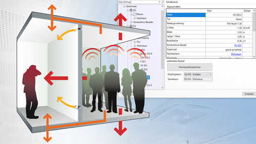 Neuheit - baulicher Schallschutz mit 3D-Funktion. Die neueste Software aus dem Hause Hottgenroth stellt den baulichen Schallschutznachweis nach DIN 4109 und somit die Gesundheit und das Wohlbefinden der Menschen in Gebäuden in den Fokus. Die Norm regelt die Mindestanforderungen an den Schallschutz im Hochbau und schreibt das Verfahren vor, nach dem die Einhaltung der geforderten Schalldämm-Maße für raumtrennende Bauteile nachzuweisen ist. Ziel der Norm ist es, Personen in Räumen vor unzumutbaren Lärmbelästigungen durch Schall zu schützen.