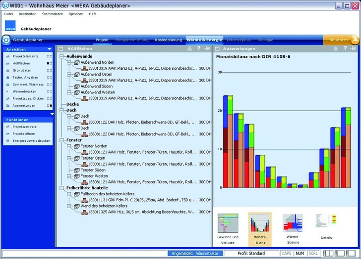 Unser Planungs- und Ingenieurbüro befasst sich mit Bauberatung, Bauplanung, Bauüberwachung sowie der Bearbeitung von Gutachten bei Gebäudeschäden und die Erstellung von Gebäudeenergieausweisen. Wir bearbeiten Wohn- und Gewerbegebäude sowie kommunale Einrichtungen, wobei wir für die gesetzlichen Wärmeschutznachweise die Software Energieausweis leicht gemacht von Weka verwenden. Wichtig für uns ist, dass mit dieser Software alle von der Bundesregierung geforderten Rechenverfahren nach der EnEV 2007 für den Wohnungsbau durchgeführt werden können. Die Software rechnet intern nach dem Monatsbilanzverfahren, wobei die U-Werte von Bauteilen nach EN 6946, von Fenstern nach DIN 4108-4 automatisch im Hintergrund ermittelt werden. Die Berechnung von haustechnischen Anlagen für Neubau und Altbau erfolgt nach DIN 4701. Das CO 2 -Aufkommen und die CO 2 -Einsparung werden mit den Werten aus dem GEMIS-Verfahren ermittelt. Die Software bietet für uns eine gute und ausführliche Bearbeitungsgrundlage mit einem jeweils sicheren Abschlussergebnis. Die Ausführlichkeit ist vor allem bei der Energieberatung bei Wohngebäuden hilfreich und der erforderliche Nachweis nach EnEV bietet eine übersichtliche Energiebilanzierung. Wichtiger Aspekt für uns war, dass die Informationen auch für Nichtfachleute verständlich aufbereitet sind. Die haustechnischen Notwendigkeiten beim Heiz- und Trinkwasserbereich werden im Nachweisverfahren ausführlich unterstützt und sind daher aus unserer Sicht für Wohngebäude eine gute Komponente.