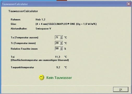 „Das kostenfreie und zertifizierte Programm Caluwin 4.6 ermöglicht die schnelle Ermittlung von Fenster- und Fassaden-U-Werten nach DIN ISO 10077-1. Das Programm aus dem Hause Sommer-Informatik ist intuitiv zu bedienen und verfügt über eine anschauliche und vollständige Ausgabe. Der Einfluss von Geometrie, Rahmen, Verglasung und Randverbund auf den Gesamt- U-Wert des Fensters (U W ) bzw. der Fassade kann einfach durch Variation der einzelnen Bauteilwerte untersucht werden. So kann zum Beispiel der Einfluss eines verbesserten Randverbundes berechnet werden. Damit können auch konkrete wirtschaftliche Abschätzungen vorgenommen werden. Dem Fensterbauer lassen sich so beispielsweise die dem Energieausweis zugrunde liegenden konkreten Einzelwerte vorgeben bzw. können Alternativvorschläge sicher beurteilt werden. Zusätzlich ist der Tauwasserkalkulator sehr nützlich, um das leidige Tauwasserrisiko am unteren Glasrandverbund insbesondere bei Aluminiumrandverbund abschätzen und den Auftraggeber ggf. darauf hinweisen zu können. Im Programm lassen sich neben den Bauteilvorschlägen der initiierenden Firmen auch völlig frei eigene bzw. Werte anderer Hersteller eingeben. Das Programm ist unter http://www.swissspacer.com unter Service-Caluwin erhältlich und bedarf lediglich einer einmaligen Registrierung zur Freischaltung.“