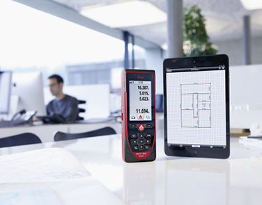Der Leica Disto D110 mit integriertem Bluetooth Smart ist mit Abmessungen von 120 × 37 × 23 mm und einem Gewicht von 92 g das kleinste und leichteste Laserdistanzmessgerät der Disto-Produktlinie. Die Messergebnisse können über die App Leica Disto sketch auf ein Smartphone oder Tablet übertragen...