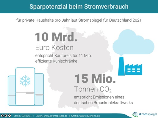 Den Stromspiegel 2021 hat das Bundesumweltministerium veröffentlicht. Er zeigt, dass private Haushalte durch Stromsparmaßnahmen jährlich 15 Millionen Tonnen CO2 vermeiden und rund zehn Milliarden Euro einsparen können.