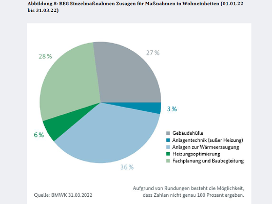 Das Bundesministerium für Wirtschaft und Klimaschutz hat Abrufzahlen für das erste Quartal zur Bundesförderung für effiziente Gebäude vorgelegt. Knapp 87.000 Einzelmaßnahmen wurden zwischen Januar und März genehmigt, knapp 56.000 Förderungen für komplette Wohngebäude und 5161 für Nichtwohngebäude.