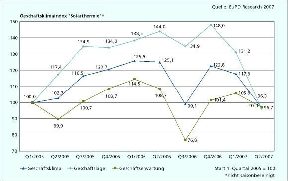 Während sich das Klima unter den Solarthermie-Unternehmen verschlechtert, gibt es bei der Geschäftslage der Photovoltaik positive Aussichten.