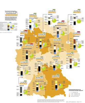Zusammensetzung und Entwicklung des Primärenergieverbrauchs in den Bundesländern 2014