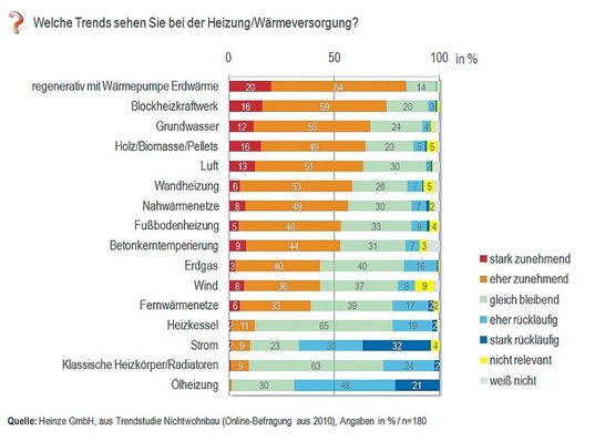 Erdwärme toppt, Öl und Strom floppen — dies ist ein Ergebnis der neuen Trendstudie Nichtwohnbau der Heinze Marktforschung, in der Architekten und Planer über die zukünftigen Entwicklungen im Nichtwohnbau befragt wurden.
