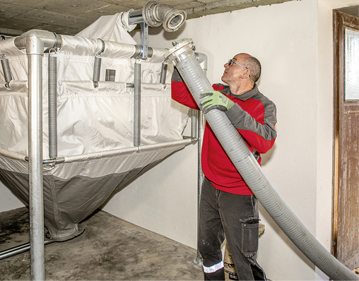 Pelletslagerung im Quartier Wie sich Holzpellets in kommunalen Wohnungsbauten lagern lassen, zeigen die Sonnenhöfe in Freiburg. Der Hersteller A.B.S. Silo- und Förderanlagen aus Osterburken hat für die vier Gebäude mehrere Siloanlagen gebaut und installiert.