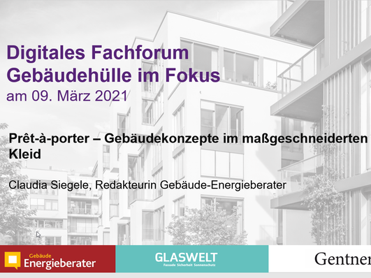 Wie können Gebäudekonzepte zukunftsweisend, nachhaltig, mit guter Energiebilanz und guter Architektur gelingen? Claudia Siegele, Redakteurin des Gebäude Energieberater, befasste sich auf dem Digitalen Fachforum Gebäudehülle mit ausgewählten Projekten.