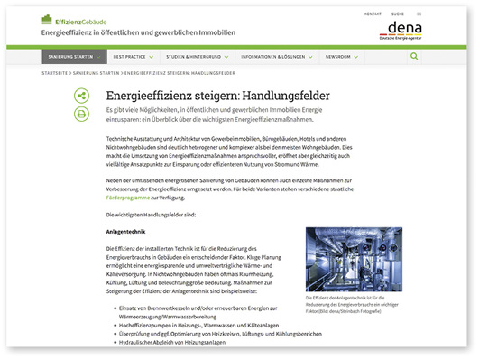 Die energetische Modernisierung von Nichtwohngebäuden bietet ein großes Potenzial, den Energieverbrauch zu verringern. Auf einem Onlineportal der dena finden Eigentümer und Nutzer öffentlicher und gewerblicher Immobilien Informationen über Möglichkeiten des Energiesparens, über Förderprogramme...