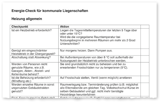 Das Kompetenzzentrum Energiemanagement der Klimaschutz- und Energieagentur Baden-Württemberg (KEA) hat in seinem Wissensportal Arbeitshilfen zum Energiemanagement zusammengestellt, darunter eine Begehungs-Checkliste zum Aufspüren von Effizienzpotenzialen, eine Tabelle zur Erfassung des...
