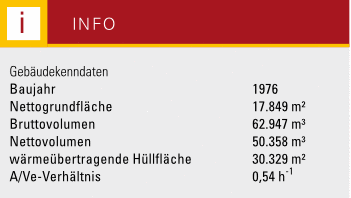 Dem 1976 gebauten Schulzentrum in Haßfurt sind die Gebrauchsspuren anzusehen – auch die Anlagen- und Regelungstechnik entspricht längst nicht mehr dem aktuellen Standard. Bevor jedoch konzeptionslos an den Symptomen herumgebastelt wird, wollte der Schulträger ein energetisches Gesamtkonzept vorgelegt bekommen und beauftragte das Fraunhofer-Institut für Bauphysik mit der Suche nach der besten Lösung. Nach akribischer Bestandsaufnahme und der Analyse verschiedener Sanierungsstrategien zeigten die Forscher auf, dass – unter Berücksichtigung wirtschaftlicher Aspekte – der Wärmebedarf jährlich um die Hälfte (56 kWh/m²a) und der Strombedarf um rund ein Drittel (10 kWh/m²) gesenkt werden kann.