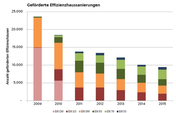 Eine Analyse der dena zum KfW-Förderreport 2015 zeigt: Die Förderung für energieeffizientes Bauen und Sanieren ist ein wichtiges Instrument für einen zukunftsfähigen Wärmemarkt. Für eine Klimaziel-gerechte Modernisierungsquote sind jedoch deutlichere Impulse erforderlich.
