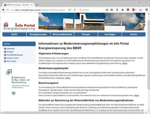 Das Bundesinstitut für Bau-, Stadt- und Raumforschung (BBSR) informiert auf einer speziellen Website über die Wirtschaftlichkeit energetischer Modernisierungen. Das Angebot richtet sich an Architekten, Energieberater und Gebäudeeigentümer.