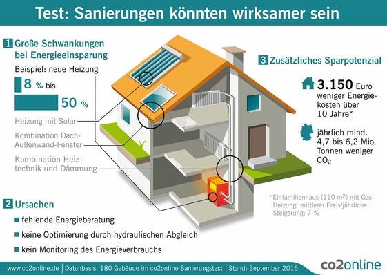 Die Sanierung von Wohngebäuden bietet leicht erschließbare Potenziale für Klimaschutz und Energieeffizienz. Durch Qualitätssicherung und Heizungsoptimierung könnte die Wirksamkeit von Sanierungen kostengünstig erhöht werden. Das geht aus einem Sanierungstest hervor, für den 180 bereits sanierte Wohngebäude untersucht wurden.