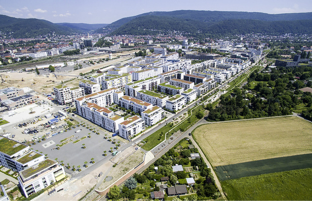 Passivhaus-Stadtteil Heidelberg Bahnstadt Schon seit nun fast zehn Jahren tüftelt und entwickelt die Stadt Heidelberg ohne Skandale, politisches Gezanke und Bürgerprostete in unmittelbarer Zentrumslage mit der Bahnstadt ein neues Stadtviertel, das sich anschickt, bis spätestens 2022 zur weltweit größten Passivhaus-Siedlung zu werden. Ein eigens dafür gebautes Holz-Heizkraftwerk versorgt das Quartier mit regenerativ erzeugter Fernwärme. Dass hier nicht mit "heißer Luft gestrickt", sondern effizient beheizt wird, belegt ein erstes Monitoring des Passivhaus Instituts. Claudia Siegele