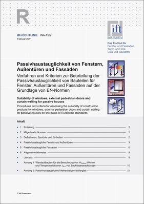 Das energetische Anforderungsniveau am Gebäude entwickelt sich stetig weiter in Richtung Passiv- bzw. Nullenergiehaus. Damit die Hersteller die geforderten Werte nachweisen können, wurde die Richtlinie WA-15/2 erarbeitet, in der die Vorgehensweise zur Beurteilung der Passivhaustauglichkeit der...