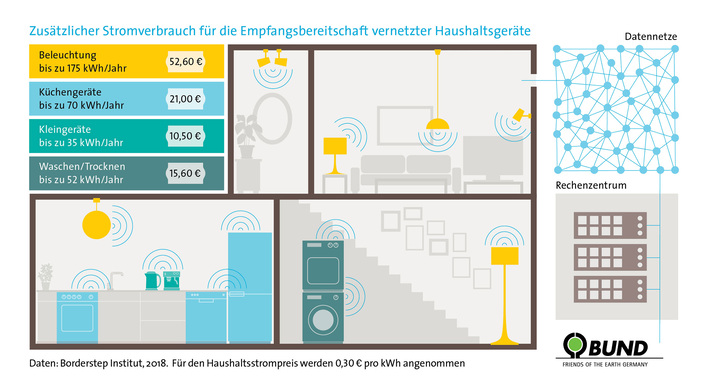 Eine im Rahmen der Berliner Energietage vorgestellte Kurzstudie des Borderstep Instituts für Innovation und Nachhaltigkeit im Auftrag des Bund für Umwelt und Naturschutz Deutschland (BUND) zeigt die ökologischen Herausforderungen der zunehmenden Vernetzung privater Haushalte.