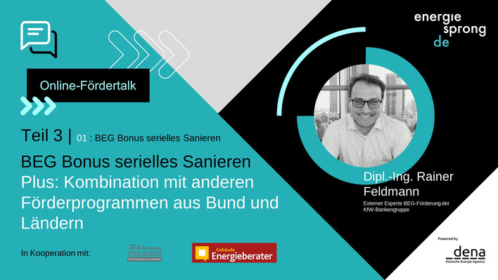 Das Energiesprong-Team der Dena informiert, gemeinsam mit dem Gebäude-Energieberater, in kostenlosen Webinaren zum Thema Förderung für serielle Sanierung. Die Aufzeichnungen der neuesten Staffel sind jetzt online.