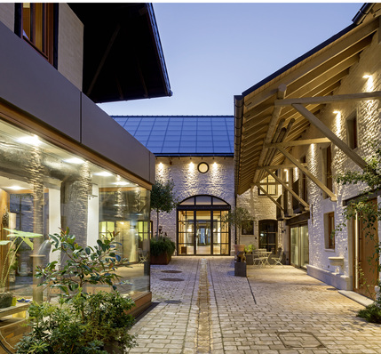 Historischer Vierseithof wird zum Sonnenhaus 50+ Der alte Bauernhof in einem kleinen Dorf unweit von Aachen lag schon viele Jahre im Dornröschenschlaf, bevor ein neuer Eigentümer auf den Plan trat und das vom Zerfall bedrohte Gebäudeensemble einer neuen Nutzung zuführte. Behutsam saniert, stets mit großem Respekt vor dem jahrhundertealten Gemäuer, wurde die historisch gewachsene Struktur des Vierseithofes wiederbelebt und eine CO2-freie, absolut regenerative Altbau-Solarisierung umgesetzt, die den Gesamtenergiebedarf des gesamten Komplexes auf 60 kWh/(m2a) reduziert. Klaus Siegele