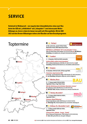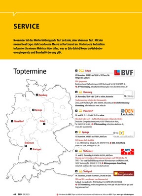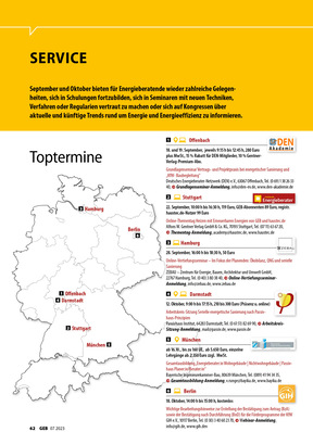 Nach entspannten Urlauben ist nun der Kopf frei für neues Wissen – wir haben Ihnen hierfür wieder viele interessante Seminare und Veranstaltungen zusammengestellt. Vor allem die Toptermine haben es diesmal in sich: Bafa-Energietag in Frankfurt, Expo Real in München und natürlich ein exklusives GEB-Webinar!