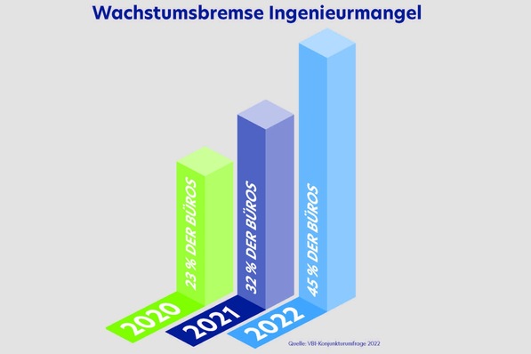 In 45 % der Planungsbüros behindert Ingenieurmangel weiteres Wachstum. Die VBI-Konjunkturumfrage 2022 zeigt eine weitere Verschärfung der Situation.