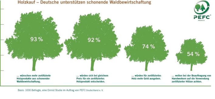 Nach einer Umfrage des Emnid-Institutes, die im Auftrag der PEFC Deutschland e.V., Stuttgart, durchgeführt wurde, wünschen sich 93 Prozent von 1000 Befragten, dass Handel, Handwerk und Industrie Holz und Holzprodukte aus nachhaltiger Bewirtschaftung anbieten. Die Ergebnisse im Einzelnen: Bei...