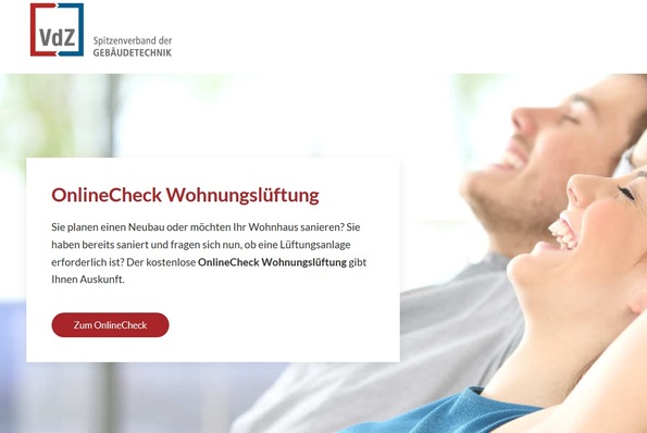 Mit dem VdZ-OnlineCheck Wohnungslüftung können Berater, Planer, Architekten, Fachhandwerker und auch Eigentümer schnell herausfinden, ob eine lüftungstechnische Maßnahme in einer Wohnung oder einem Haus notwendig ist.