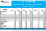 Das BAFA veröffentlicht ab 2014 für das Förderprogramm Vor-Ort-Beratung quartalsweise eine tabellarische Auswertung, der sich die geförderten Beratungen, untergliedert nach Bundesländern und Wohneinheiten, jeweils nach Anzahl und Zuschusshöhe entnehmen lassen.