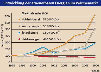 Die Investitionen in erneuerbare Energien und energiesparende Heizungen sind im vergangenen Jahr sprunghaft angestiegen. Das belegen die aktuellen Marktzahlen des Bundesindustrieverbands Deutschland Haus-, Energie- und Umwelttechnik (BDH) e.V. In Deutschland wurden im Jahr 2006 rund 70 Prozent...