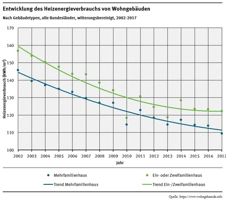 Häuser und Wohnungen in Deutschland werden zwar energieeffizienter, aber die Entwicklung stagniert nahezu. Das zeigt eine neue Studie des Umweltbundesamts (UBA), in der bundesweite Daten zu Energieverbrauch und Modernisierungsstand von Wohngebäuden von 2002 bis heute ausgewertet wurden.