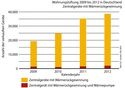 Neuer Absatzrekord: Laut gemeinsamer Statistik von FGK und BDH sind im Jahr 2012 in deutschen Wohngebäuden rund 36.360 Zentrallüftungsgeräte mit Wärmerückgewinnung installiert worden. Das entspricht einer Steigerung von 9,2 % gegenüber 2011.