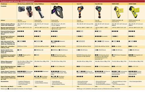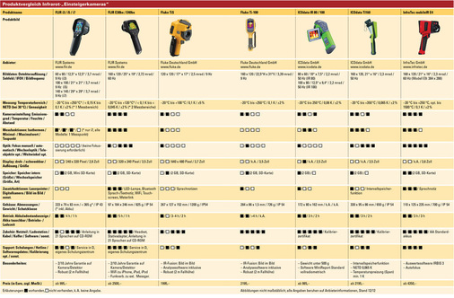 Die Kamera-Modellvielfalt ist im unteren Preissegment (bis ca. 5000 Euro) mittlerweile recht groß, obwohl zwei Anbieter im Vergleich zur letzten Marktübersicht (GEB 2/2012) diesmal nicht dabei sind: Dias Infrared bietet keine handgeführten IR-Kameras mehr an und PCE Deutschland verfügt aktuell über kein 160 x 120 Pixel-Einsteigermodell.