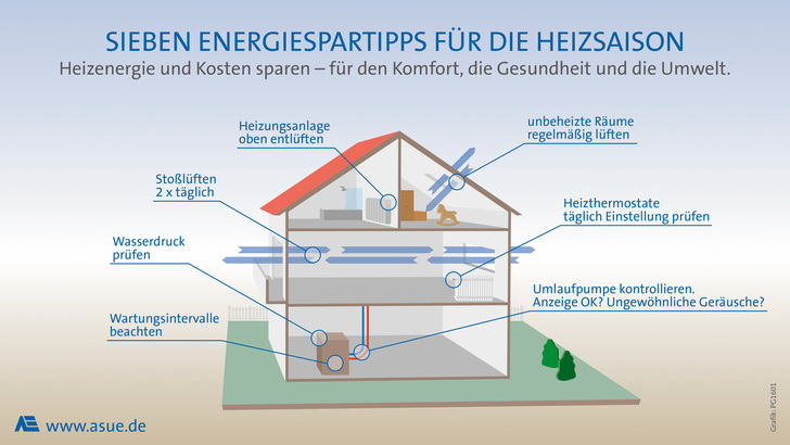 Rund 40 Prozent der Energie in Deutschland wird beim Heizen von Gebäuden verbraucht. Mit sieben Tipps will die ASUE helfen, Energie einszusparen und die Heizkosten zu verreingern.