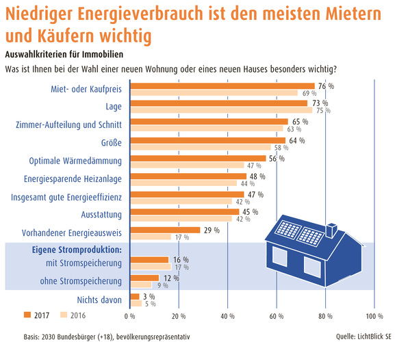 Energiethemen haben bei der Wohnungs- und Haussuche damit im Vergleich zum Vorjahr wieder an Bedeutung gewonnen. Zu diesem Ergebnis kommt die sechste repräsentative Immobilien-Umfrage von LichtBlick. Für die Umfrage hat das Marktforschungsinstitut YouGov 2030 Bundesbürger ab 18 Jahren in einer repräsentativen Untersuchung online befragt.