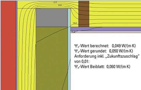 Weichen die Details zwischen Projekt und Normzeichnung entscheidend ab, legt der detailspezifische Wert der Norm die Messlatte fest, nach der sich die rechnerischen Nachweise orientieren müssen. Eine gute Hilfestellung bei der Einschätzung geben hierzu Wärmebrückenkataloge, oder es können zweidimensionale Berechnungen mit einem geeigneten Wärmebrückenprogramm durchgeführt werden. Selbst wenn die EnEV solche Nachweise bei besonders hohem Bauteilwärmeschutz nicht mehr verlangt, werden sie für den Nachweis der KfW-Standards dennoch gefordert – und zwar zu Recht.