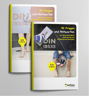 Je 20 Fragen zur DIN 18533 „Abdichtung von erdberührten Bauteilen“ und zur DIN 18534 „Abdichtung von Innenräumen“ beantwortet Saint-Gobain Weber in zwei Broschüren. Sie vermitteln eine Übersicht über die neuen Abdichtungsnormen, die seit Juli DIN 18195 ersetzen. Dazu gehören beispielsweise die Fragen, welche Wassereinwirkungsklassen die Norm bei der Abdichtung von erdberührten Bauteilen unterscheidet, wie hoch die Sockelabdichtung bei einem geputzten Sockel auszuführen ist und was bei der Ausführung dokumentiert werden muss. Die Veröffentlichung zur außenseitigen Bauwerksabdichtung verdeutlicht die Zuordnung verschiedener Abdichtungsbauarten zu Riss- und Nutzungsklassen. Die Broschüre für den Innenraum stellt die Kategorien für Wassereinwirkung nach altem und neuem Regelwerk gegenüber. Typische Systemaufbauten und Produktempfehlungen ergänzen das Informationsangebot. Die Broschüren können kostenlos heruntergeladen werden unter