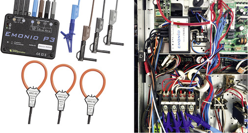Der Dreiphasen-Datenlogger Emonio P3 misst Wechselstrom und -spannung und ermittelt daraus die elektrische Leistung von Hausanschlüssen, Haupt- und Unterverteilungen, Geräten und Anlagen. Er liefert sofort Messdaten auf jedes mobile Gerät mit WLAN-Funktion. Über das Internet lassen sich die Daten auch in die Analyseplattform my.emonio.de übertragen. Die Strommessung erfolgt noninvasiv über Rogowskispulen oder Klappstromwandler. Für die Spannungsversorgung und -messung kommen Magnetmessspitzen oder Anschlussklemmen bzw. Prüfspitzen zum Einsatz. Das von Energieberatern entwickelte Energiemessgerät kann in jedem Verteilerkasten angeschlossen werden, ohne dass die Stromversorgung beim Kunden unterbrochen werden muss. Es wird für die Messung der Wirk-, Blind- und Scheinleistung von Ein- oder Dreiphasen-Verbrauchern eingesetzt und eignet sich für die zeitgleiche Messung diverser Verbraucher an verschiedenen Standorten. In der Analysesoftware my.emonio werden die gemessenen Daten in Echtzeit grafisch dargestellt. Hier kann die Projektstruktur abgebildet werden und das Messgerät mit Messdaten einem Projekt zugeordnet werden. Eine Hierarchiestruktur erlaubt dem Nutzer, für seine Kunden Accounts mit eigenen Lese- und Schreibrechten anzulegen. Beim Zusammenstellen der Dashboards mit individuellen Diagrammen und Diagrammtypen können Zeitraum und Auflösung beliebig gewählt werden.