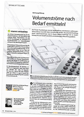 In einem Fachbeitrag in der Zeitschrift TGA-Fachplaner setzt sich Norbert Nadler vom Ingenieurbüro CSE Nadler kritisch mit der DIN 1946-6:2009-05 auseinander. Gleichzeitig empfiehlt er Anwendern, den Überarbeitungsentwurf der DIN 1946-6 kritisch zu prüfen und Einsprüche rechtzeitig einzureichen. Wichtige Inhalte des Fachbeitrags: