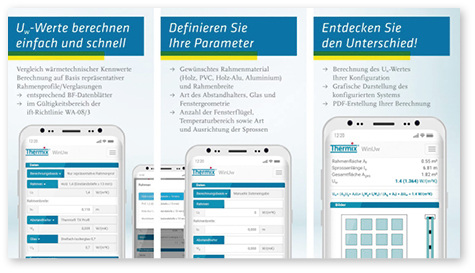 Wer wissen will, wie sich der Wärmedurchgangskoeffizient (U W ) bei der individuellen Zusammenstellung des Fenster-Systems optimieren lässt, kann mit dem Thermix WinU W -Rechner von Ensinger die wärmetechnischen Kennwerte gemäß EN ISO 10077-1 berechnen. In der aktuellen Version wurden die hinterlegten Daten um die Abstandhalter Thermix TX PRO und Thermix Low Psi erweitert. Fensterbauer, Energieberater, Planer und Architekten können in dem Kalkulations-Tool verschiedene Rahmenmaterialien, Verglasungen und Abstandhalter wählen. Die verwendeten Psi-Werte der Abstandhalter (Thermix Warme Kante vs. Aluminium), Rahmenprofile (Holz, PVC, Holz-Aluminium, Aluminium) und der Zweifach- bzw. Dreifach-Isolierverglasungen basieren auf Werten der Datenblätter des Bundesverbands Flachglas (BF) und dem Gültigkeitsbereich der Richtlinie WA-08/3 des Instituts für Fenstertechnik (ift). Der U W -Rechner steht als App im Google Play Store und im App Store sowie online unter www.thermixspacer.com
