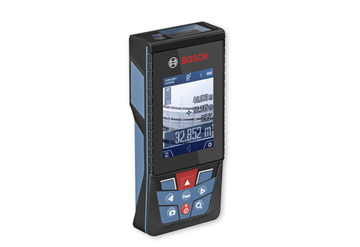 Für das Messen von Längen, Flächen, Volumen und Neigungen hat Bosch den neuen Laser-Entfernungsmesser GLM 120 C Professional vorgestellt. In hellen Umgebungen oder auf lange Distanzen war es bisher schwer, den Laserpunkt eines Entfernungsmessers genau zu erkennen. Hier kommt die integrierte Kamera zum Einsatz. Mit ihrer Hilfe kann der Anwender anhand eines Fadenkreuzes auf dem Display den Zielpunkt genau anvisieren – und dadurch auf Entfernungen bis 120 m präzise messen. Die Kamera mit einer Auflösung von fünf Megapixeln arbeitet mit einem dreistufigen Zoom und speichert bis zu 700 Bilder. Die letzten 50 Bilder zeigt sie im Display gemeinsam mit dem gemessenen Wert an. Die Messwerte können per Bluetooth-Schnittstelle direkt in die Measuring Master App übertragen und dort weiterverarbeitet werden. So lassen sich z. B. Messdaten mit Kollegen teilen, Materialkalkulationen vornehmen oder Grundrisse erstellen und anpassen. Zusätzlich dient die App als Fernbedienung für den Entfernungsmesser, sodass ohne Verwackeln und ohne Unterstützung eines Kollegen gemessen werden kann. Der interne Speicher lässt sich auch über eine Micro-USB-Schnittstelle am PC auslesen. Die neu integrierte Nutzerführung bietet Hilfestellungen per Text und Animationen. Neu ist auch die automatische Erkennung des Messpins: Das Gerät erkennt, wenn der Pin vollständig ausgefahren ist, etwa bei Messungen aus einer Ecke heraus. In dem Fall müssen Anwender die Referenz nicht manuell umschalten, sondern lediglich bestätigen. Die letzten vier Messungen und das aktuelle Messergebnis werden bereits während der Messung auf dem Display angezeigt. Damit sich die Werte in jeder Situation und bei jeder Neigung einfach ablesen lassen, dreht sich das Farbdisplay automatisch mit – wie bei einem Smartphone.