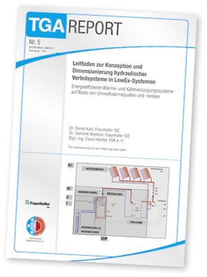 Der Fachverband Gebäude-Klima e.V. (FGK) hat einen „Leitfaden zur Konzeptionierung und Dimensionierung hydraulischer Verteilersysteme in LowEx-Systemen“ veröffentlicht. Claus Händel, Technischer Referent des FGK erklärt dazu: „Insbesondere bei der Nutzung regenerativer Energien zum Heizen und Kühlen ergeben sich für die Wärmeübertragung nur sehr geringe Temperaturdifferenzen, sodass die hydraulischen Randbedingungen stärkere Bedeutung haben.“ Die Veröffentlichung fasst Ergebnisse des LowEx-Forschungsprojekts „Qualitätssicherung bei der Planung und Ausführung von Hydraulikkonzepten in niedrigexergetischen Heiz- und Kühlsystemen“ zusammen und gibt Auskunft darüber, wie Nutzenergie in niedrigexergetischen Systemen gespeichert und über Kälte- und Wärmeverteilersysteme im Gebäude nutzbar gemacht werden kann, z. B. für Betonkern- und Fußbodentemperierung oder abgehängte Heiz- und Kühldeckenpaneele. Der Leitfaden trägt den technischen Anforderungen und Besonderheiten Rechnung, die sich ergeben, wenn Umweltwärmequellen und -senken für die Wärme- und Kälteversorgung genutzt werden sollen. Der TGA-Report Nr. 5 wurde in Zusammenarbeit mit dem Fraunhofer-Institut für Solare Energiesysteme erarbeitet und richtet sich an und TGA-Fachplaner sowie an Fachbetriebe.