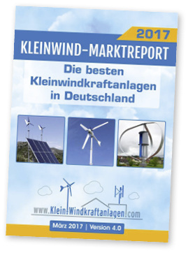 Wie sein Vorgänger informiert der Kleinwind-Marktreport 2017 über empfehlenswerte kleine Windanlagen für private und gewerbliche Betreiber. Weil fragwürdige Anlagentechnik und unseriöse Vertriebsmethoden auch 2016 und Anfang 2017 ein Problem waren, will der Autor mit dem Marktreport Orientierung bei der Auswahl einer passenden Windkraftanlage bieten. Die Veröffentlichung umfasst die Beschreibung von 32 Herstellern, 86 Windradtypen und 101 Generator-Rotor-Kombinationen. Ferner werden Rahmenbedingungen für den Betrieb von Kleinwindanlagen erläutert, z. B. das EEG 2017 und Landesbauordnungen. Der Marktreport ist als PDF-Datei mit 193 Seiten zum Preis von 38,99 Euro erhältlich in der Rubrik Produkte unter