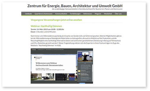 Bei einer Veranstaltung im IKzB wurde in Fachvorträgen über ökologisches Dämmen informiert. Wer sie verpasst hat, kann auf der Website des Zentrums für Energie, Bauen, Architektur und Umwelt die Aufzeichnung ansehen. In den Vorträgen ging es um die Möglichkeit, Materialien einzusetzen, die auch in Hinblick auf die Produktion und die Recyclingfähigkeit eine nachhaltige Alternative bieten. Die Referenten vermitteln Fachwissen zu Dämmmaterialien aus nachwachsenden Rohstoffen wie Zellulosedämmung und Holzfaserdämmstoffen.
